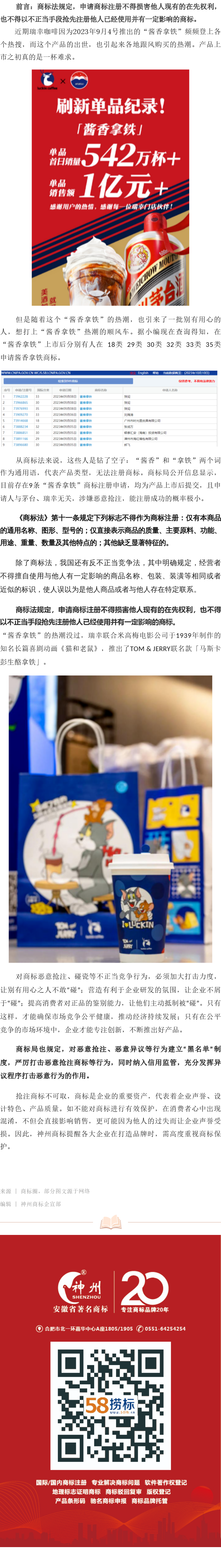 瑞幸咖啡“醬香拿鐵”的風(fēng)還沒吹夠,卻遭多人搶注商標(biāo)!